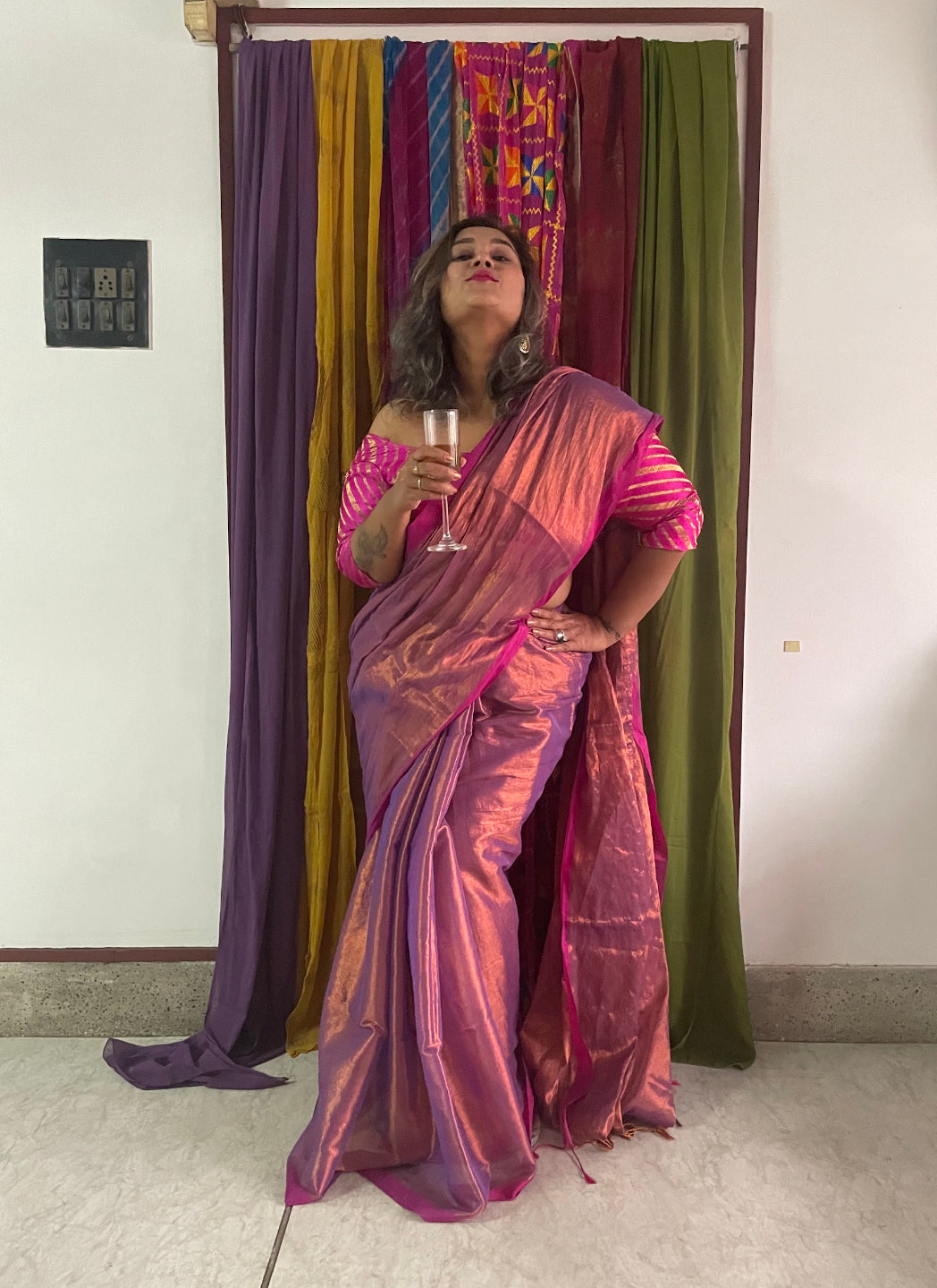 This collection is where tradition meets shimmer. Inspired by the raw beauty of molten metal—bronze, gold, copper, steel—these handloom cotton zari sarees carry a soft metallic sheen, echoing strength and fluidity. Think moonlit gatherings, flickering diyas, and quiet power. Whether you pick the minimalist Plain or the expressive Designer variant, each drape is a tribute to resilience and radiance.